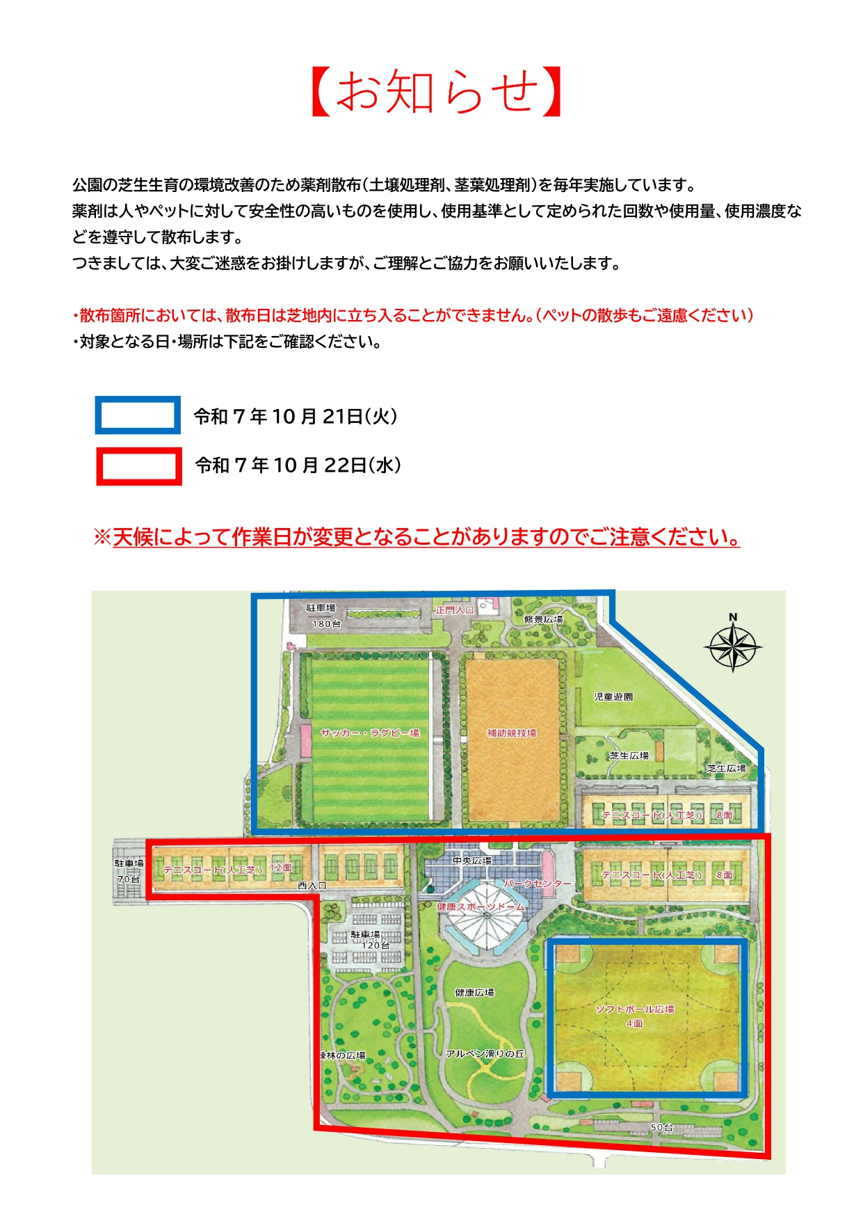 【作業日変更】芝生エリア薬剤散布作業のお知らせ